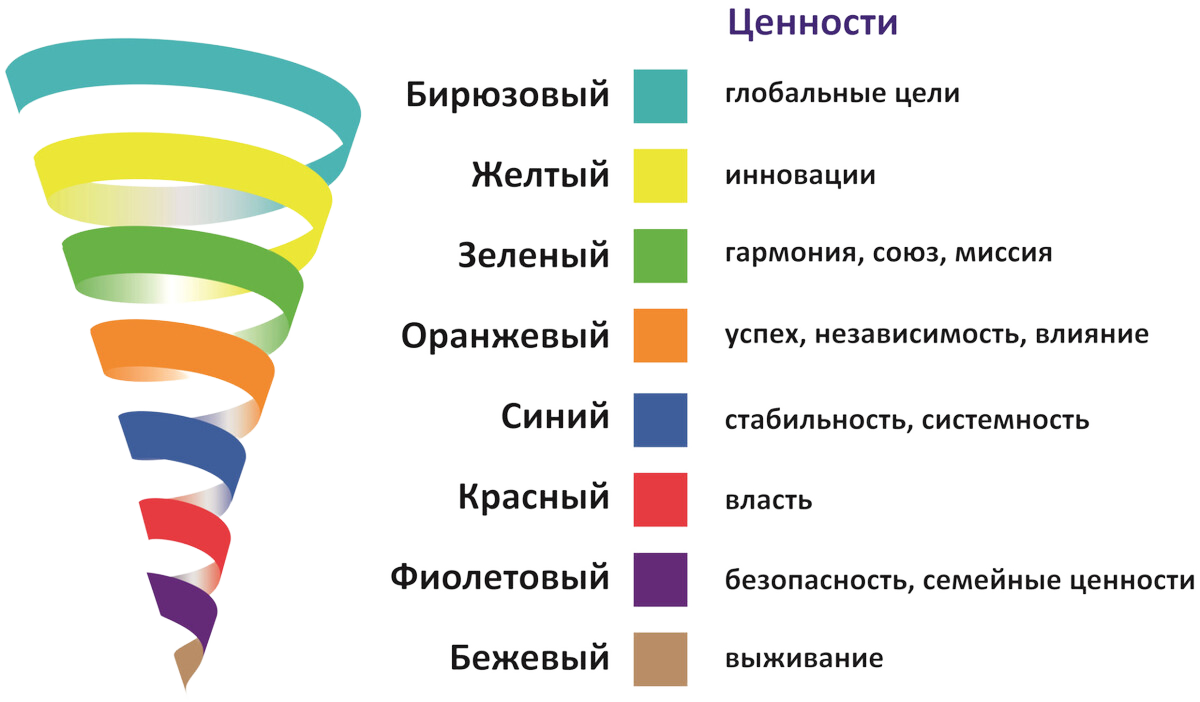 Спиральная динамика - это психологическая и социальная теория, которая описывает эволюцию человеческого сознания и организаций через последовательные уровни развития.